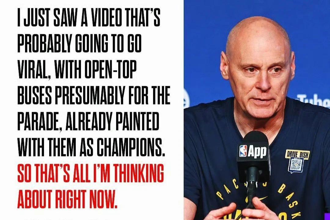 在这里,奥布莱恩奖杯蓄势待发。赛前,卡莱尔表达了自己的不安,他表示,自己看到了一段视频,内容是雷霆队的夺冠游行大巴已经被粉刷好。并表示,他现在满脑子都在琢磨这个。具体在琢磨什么,我们应该清楚,这总冠军,是不是已经被内定了?