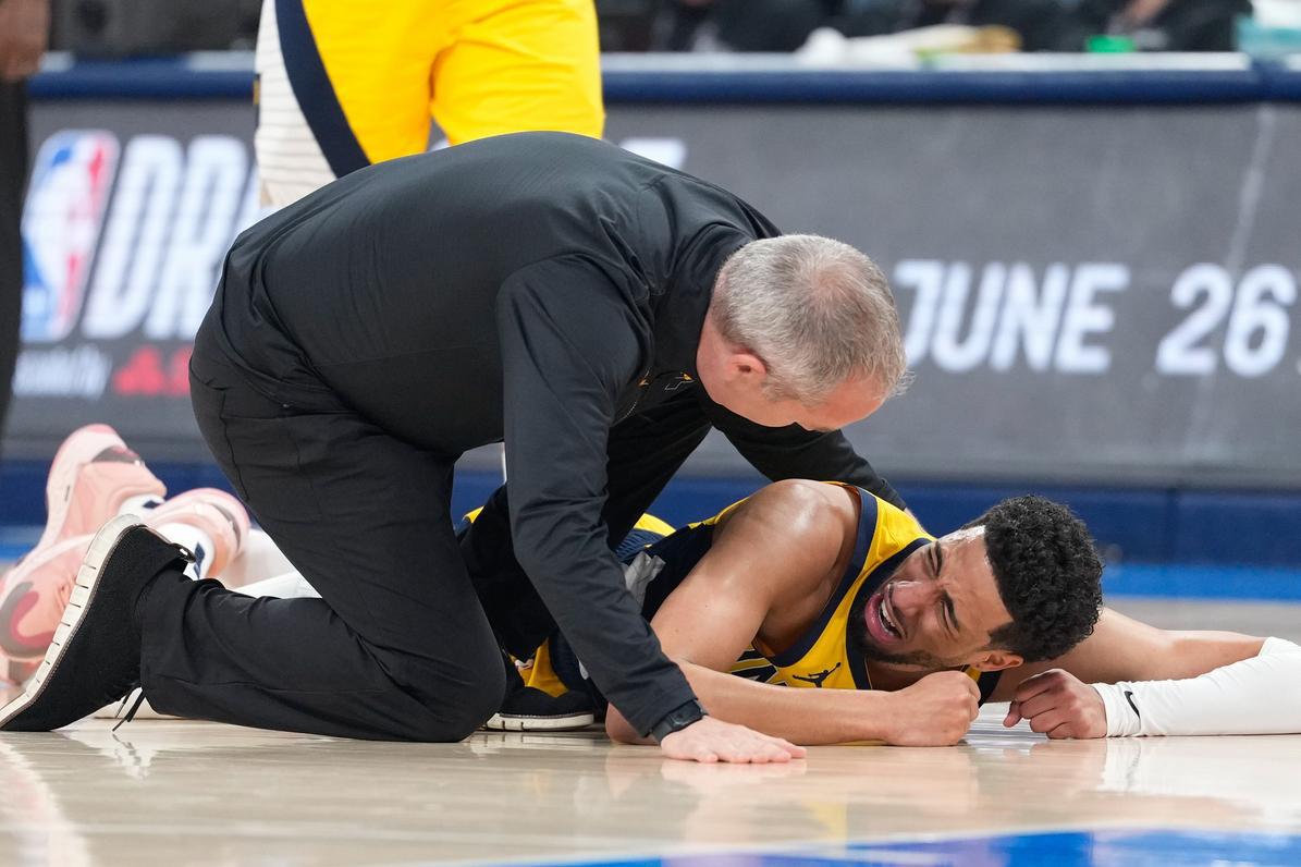 跟腱断裂?哈里伯顿总决赛倒地!雷霆夺冠,步行者昂首离开!